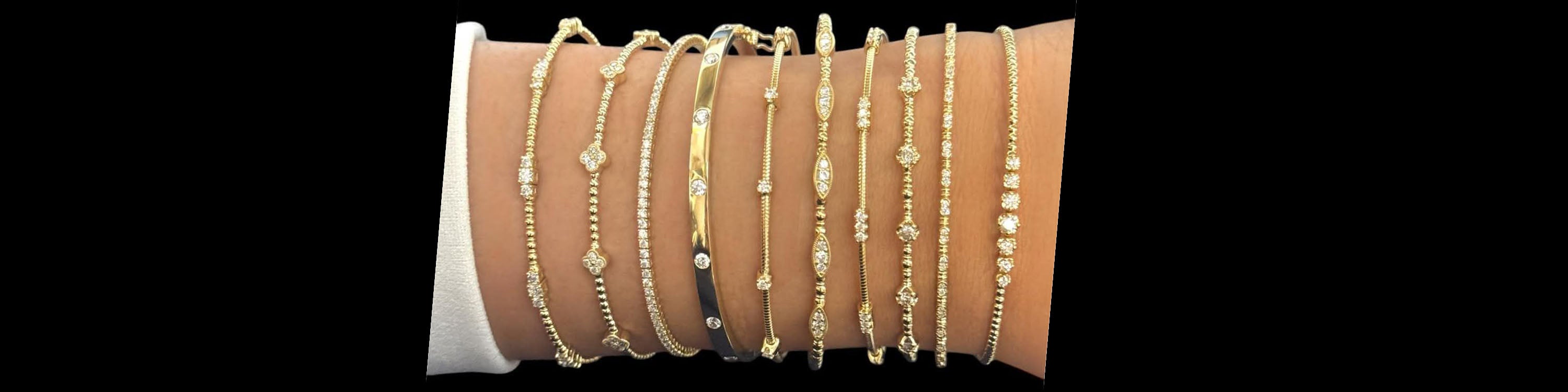 Browse our stunning collection of bangle bracelets, featuring sleek gold bangles, diamond-accented designs, and vintage-inspired styles. Perfect for stacking or wearing solo, each piece is crafted with attention to detail and timeless appeal.