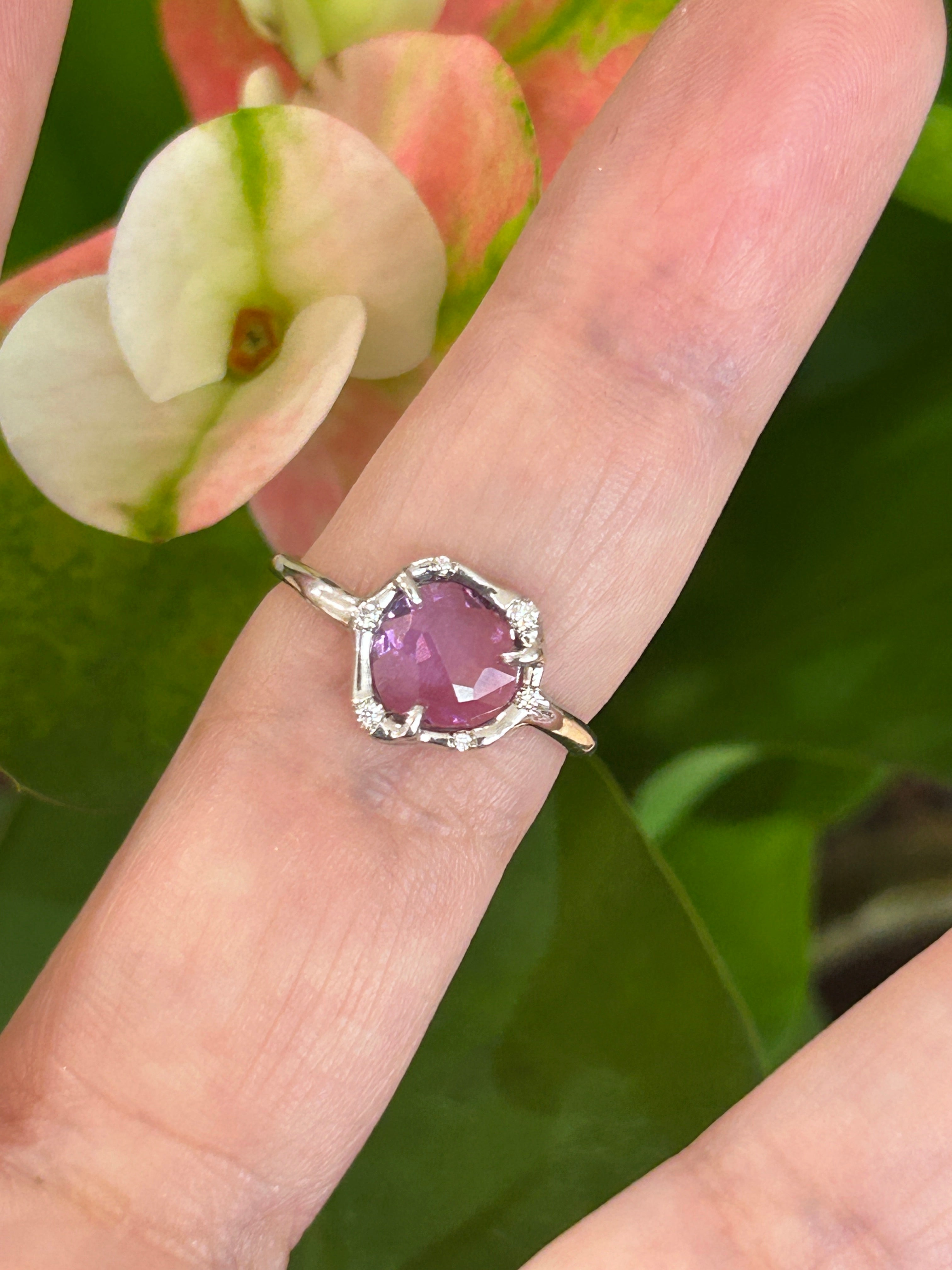 ⭐14k contemporary purple stone and diamond ring, appx. 0.05 cttw, size 5 $225.00